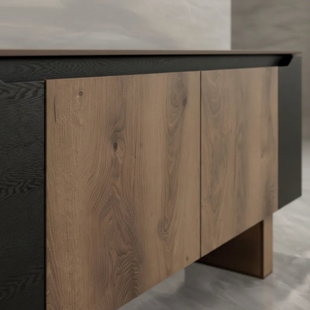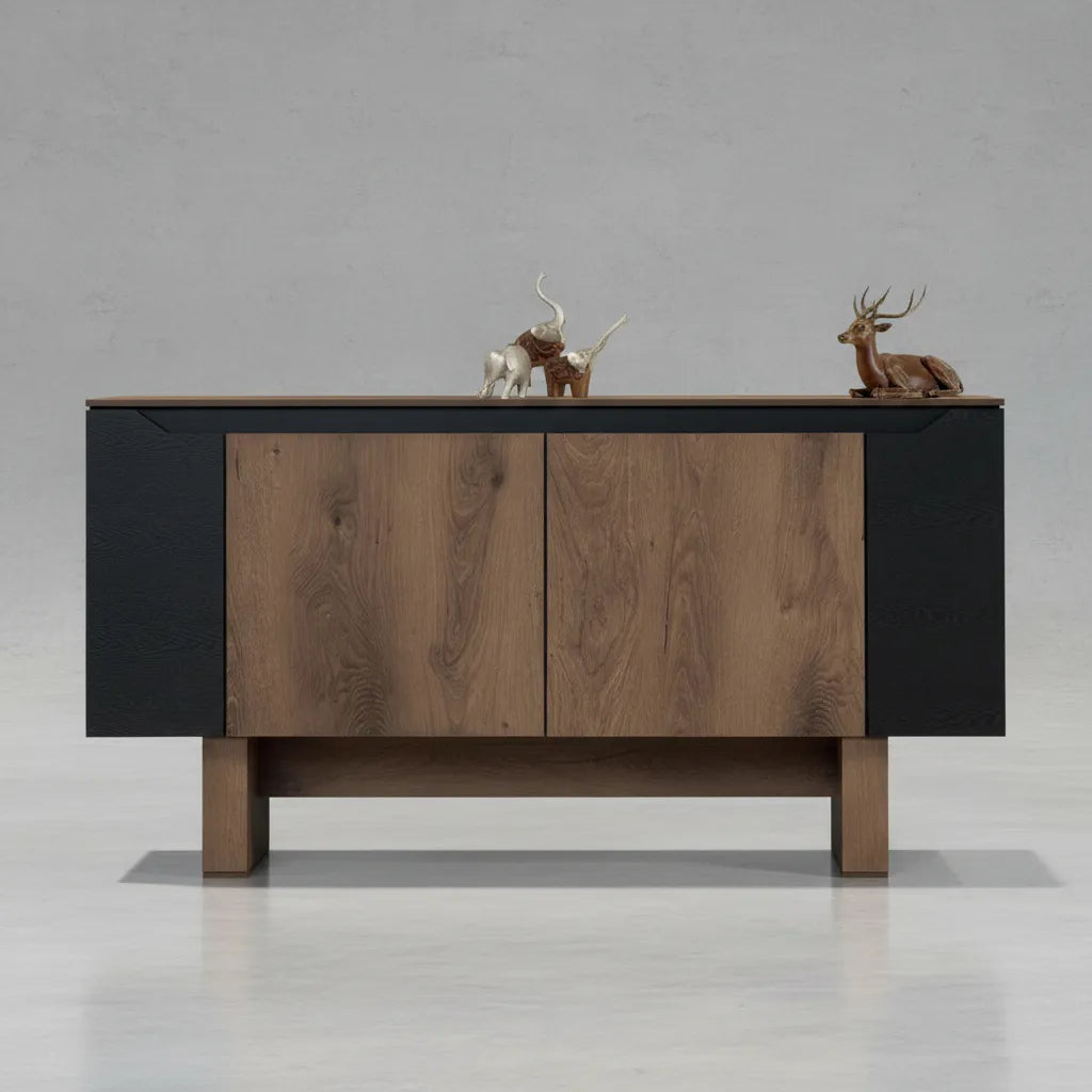 El Bufetero Praga Roble eleva tu espacio con un diseño que combina naturalidad, carácter y modernidad. Su acabado en roble aporta una riqueza visual llena de textura y calidez, mientras los acentos en negro le dan un contraste sofisticado que lo convierte en una pieza protagonista dentro del comedor o sala.